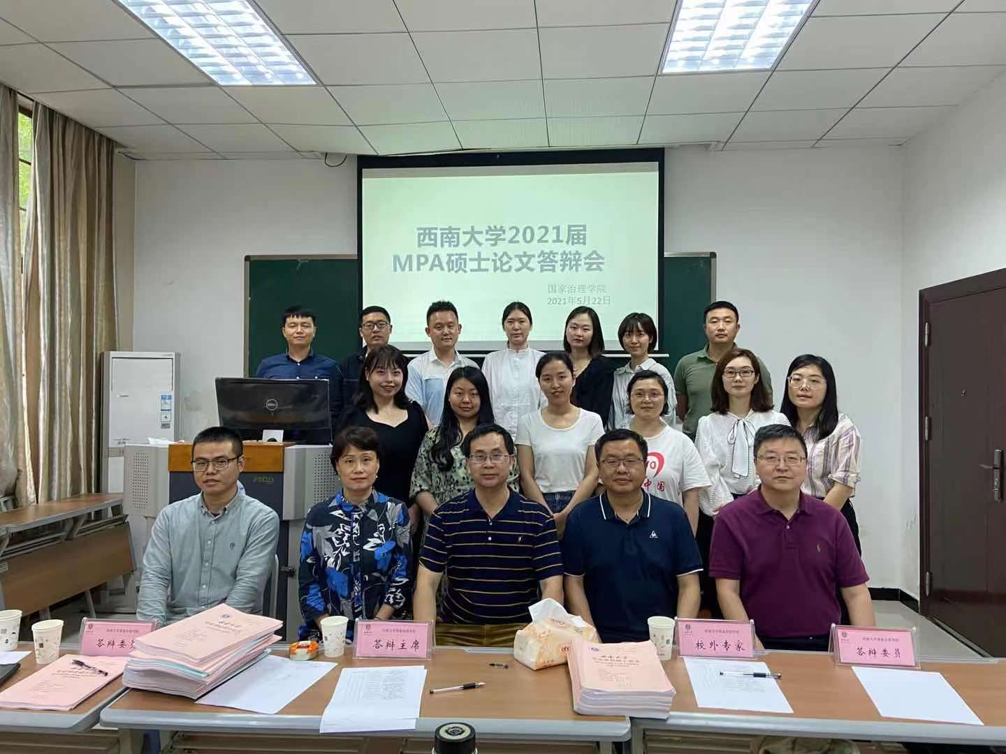 发布时间: 2024-04-01 10:05:38 已阅读:2021年5月22日,伟德国际1946源于英国MPA教育管理中心于绩镛楼举行了2021届MPA学位论文答辩。共有53名毕业学生分四个小组进行答辩,担任答辩委员会主席的分别为重庆大学张鹏教授、重庆市委党校谢来位教授、西南政法大学邹东升教授、重庆师范大学曾礼教授,校外兼职导师有重庆市人民政府徐恭位教授、北碚区天生街道办事处副主任袁凤副教授、北碚区人大王玄德副教授、北碚区委党校侯祖戎副教授。